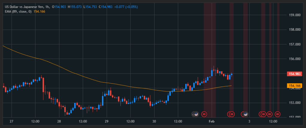On the H1 timeframe, USD/JPY has temporarily reclaimed EMA 89 and is currently trading above this level. From here, two scenarios are worth monitoring: