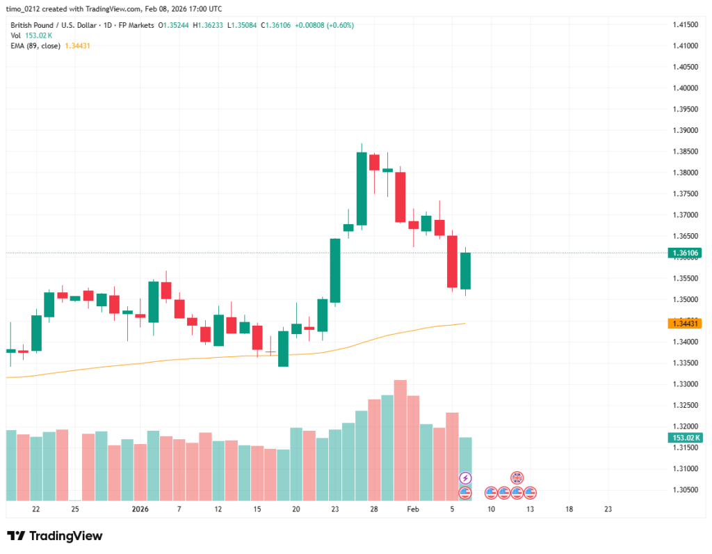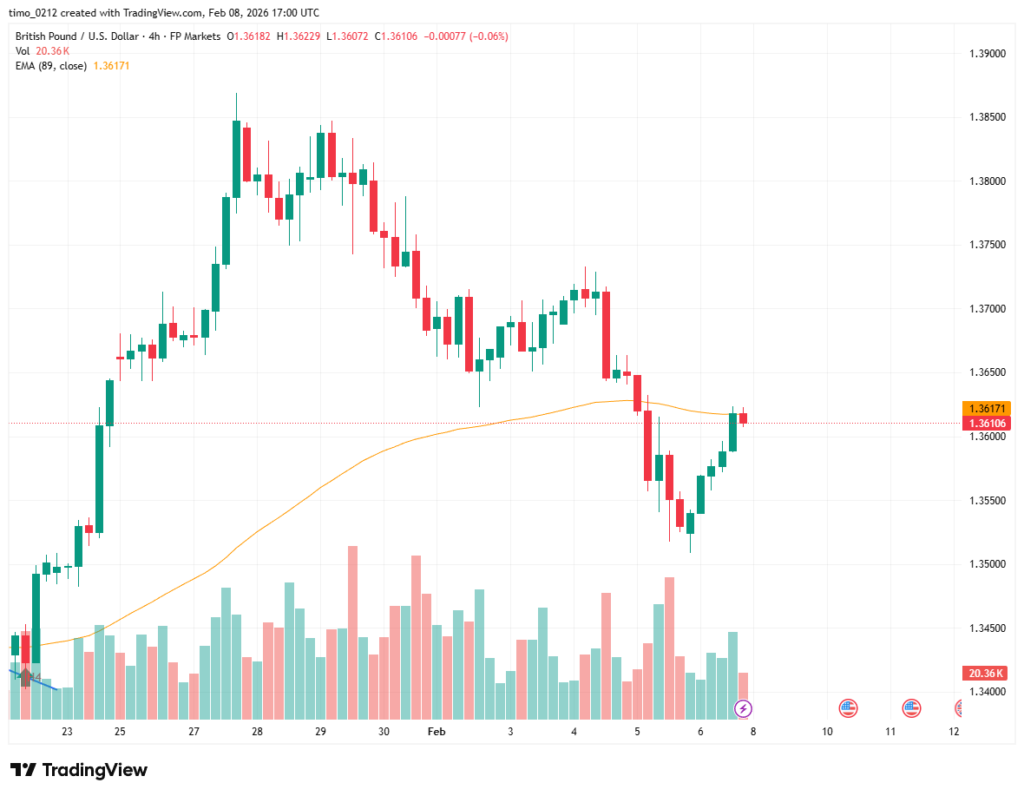 On the daily chart, GBP/USD previously rallied strongly toward the 1.39 area, followed by a sharp correction. During last Friday’s session, the pair showed a strong bullish rebound, suggesting renewed buying interest.