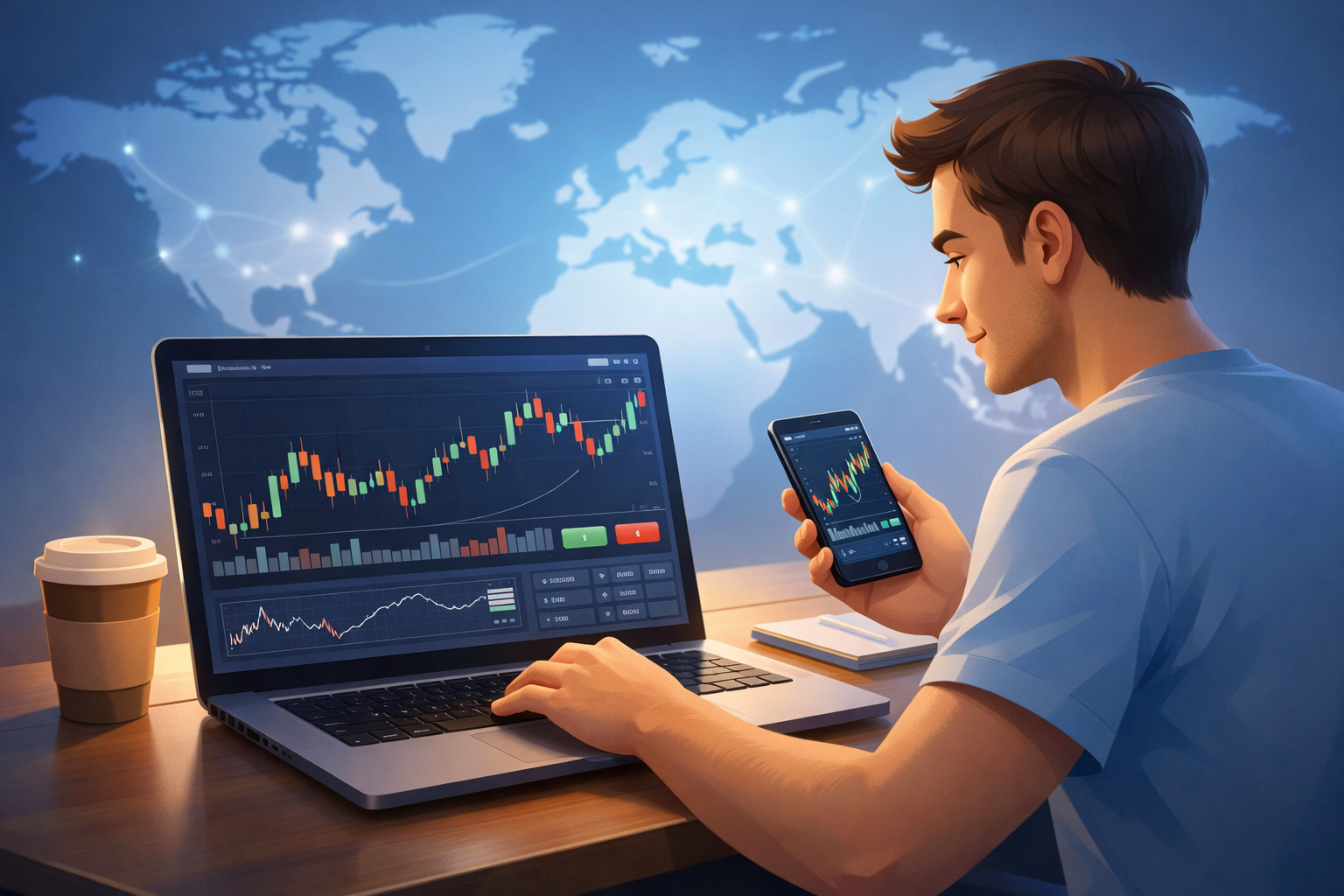 Forex trading involves buying one currency while selling another. Traders do not exchange physical money.