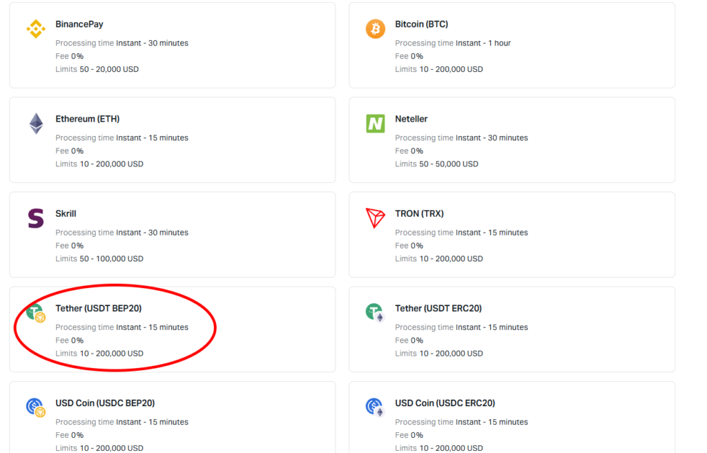 - Select USDT and Network match with other trading platforms you want deposit