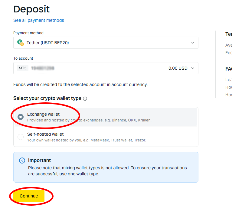 - Select the deposit USDT method ( check network carefully)