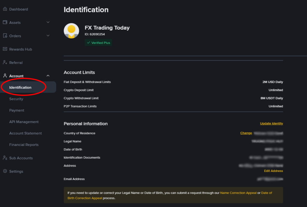- Go to Account→ Identification