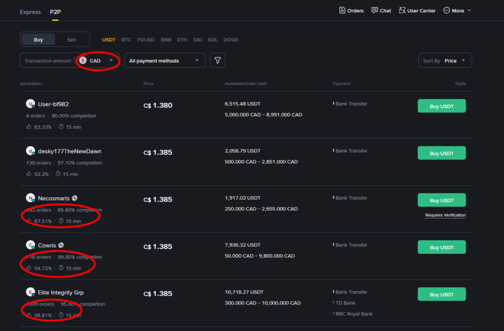 Step 4: Buy USDT via Binance P2P