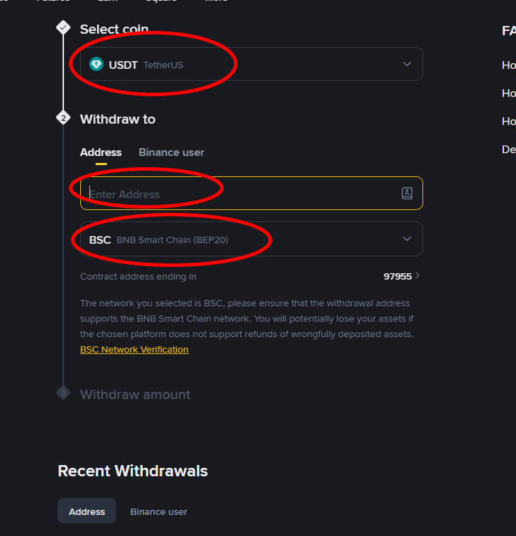 - Enter the amount of USDT